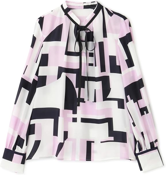 - アイテム: ブラックxピンクxホワイトのジオメトリックプリントブラウス