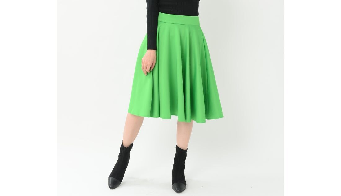 ウェーブ骨格さんは、柔らかく優しいドレープが特徴の素材と、丈62cm以下のひざ下丈を選ぶことで、女性らしさを引き出したAラインスカートが似合います。