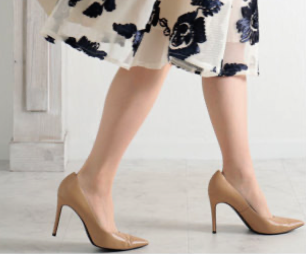 丈が長いAラインスカートを選んだなら、靴を見せることで足首をシャープに見せるパンプスやバレエシューズが、全体のシルエットを引き締めてくれます。