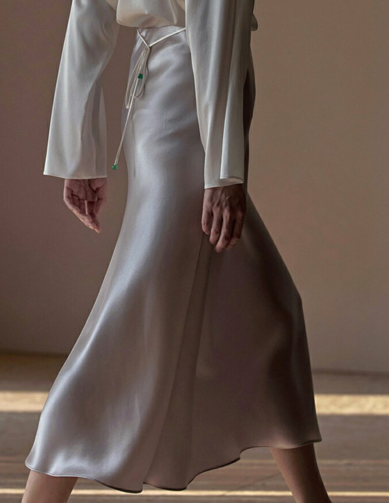 最大の特徴は、腰や太ももの丸みを優しく包み込みながら、下半身全体をカバーしてくれるという点。ひざ下まで程よい余裕を持つ丈が一般的で、フレアスカートほど大げさではないけれど、タイトスカートのような張り付きもない——まさにバランスの取れたシルエットなんです。